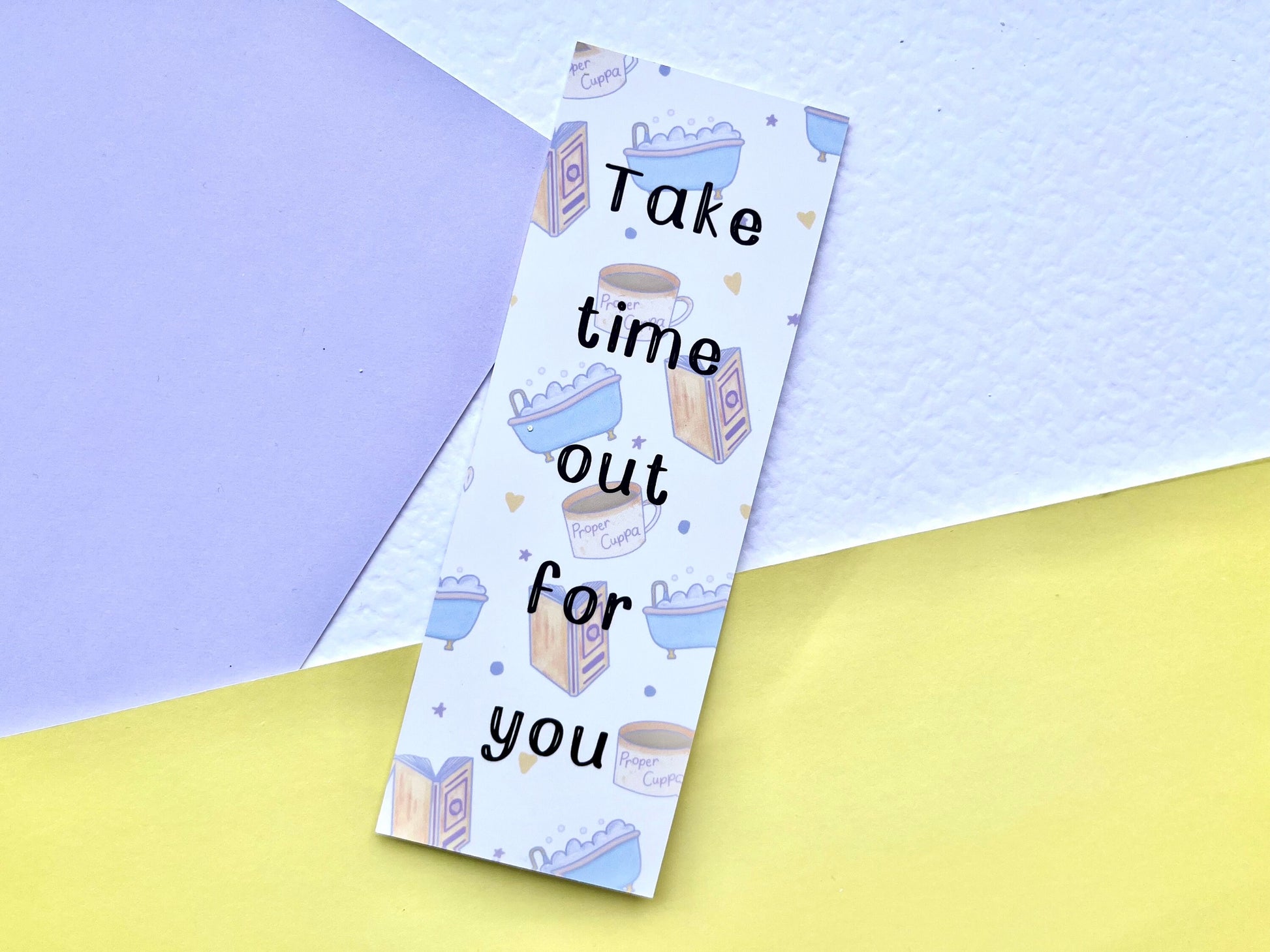 Are you or someone you care about need that extra moment to yourself/themselves? Well why not treat yourself (or them) to a Self Care Bookmark! Decorated with illustrated bubble baths, 'Proper Cuppa' mugs of tea and books, this bookmark has a velvet coating on both sides to make your reading experience extra special. The bookmark is double sided and has the quote: 'Take time out for you' on the back as a reminder to look after yourself and take the opportunity to relax!