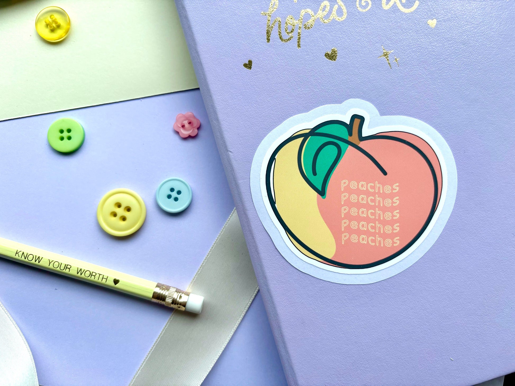 Whenever I see a peach, I automatically sing the Bowser song from the new Mario film - Peaches Peaches Peaches Peaches Peaches… etc etc. it’s too catchy, I had to make a sticker version! You can use the sticker to decorate many items including laptops, diaries, journals & even your phone cover!