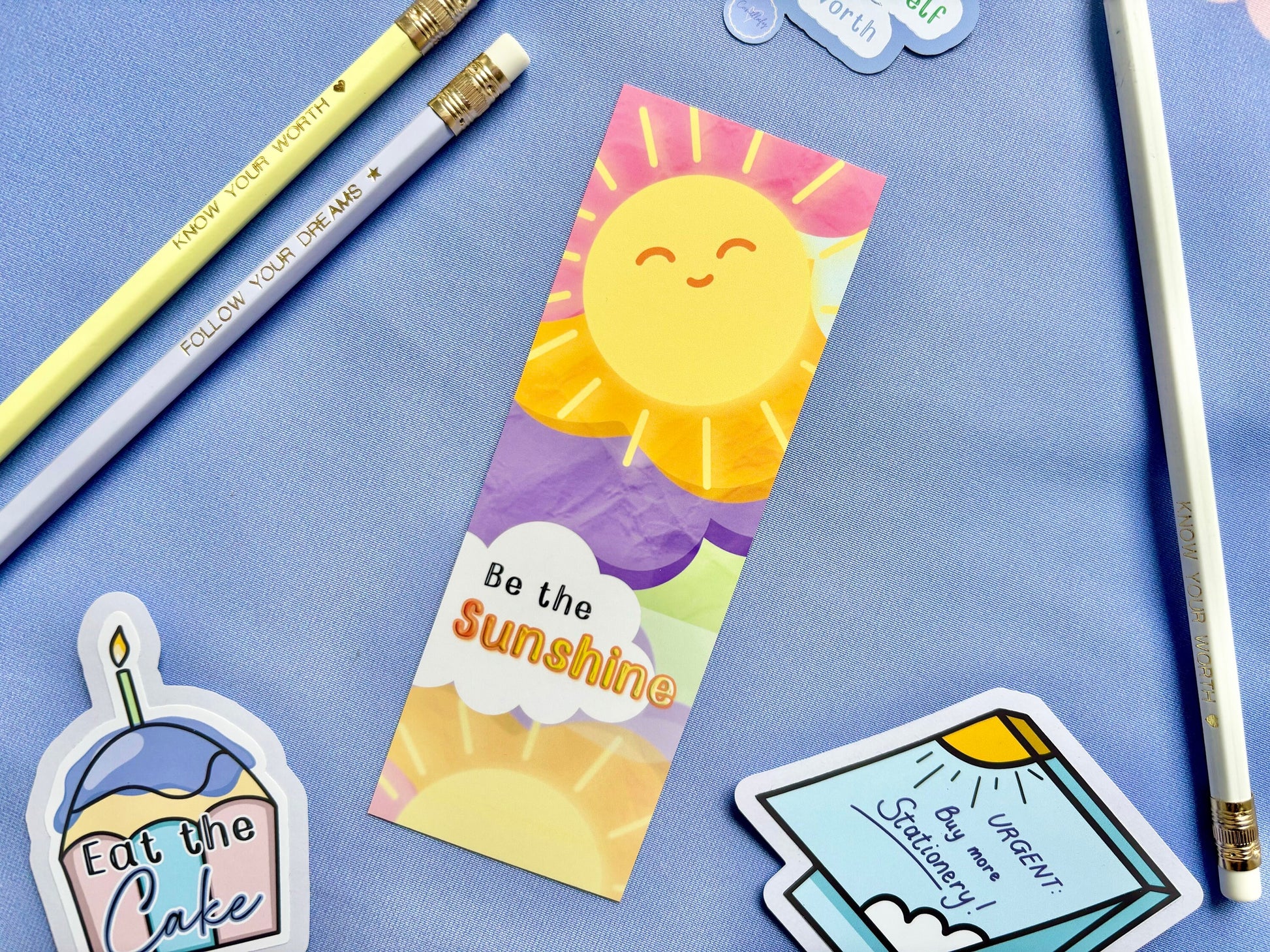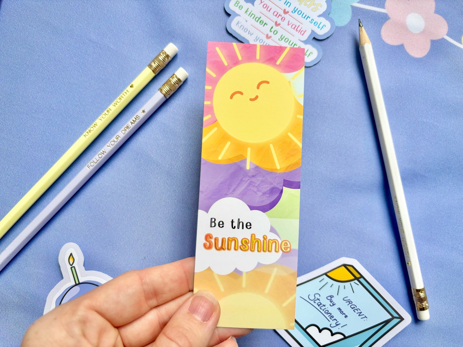 Want to bring a bit of sunny positivity to your reading endeavours? Well this Sunshine Happiness Bookmark will certainly do the trick! With a velvet coating on both sides, this adorable bright bookmark is sure to make your reading experience extra special. The bookmark is double sided and has the saying 'Be the Sunshine' on the front, and a closer image of the sunshine illustration on the back.